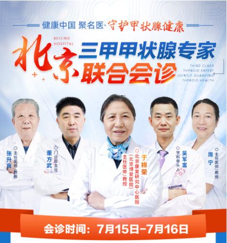 為了滿足甲狀腺疾病患者的看診需求,昆明中研甲狀腺醫(yī)院于7月15-16日特邀原中國北京康復(fù)研究中心于棉榮教授來院聯(lián)合會(huì)診,屆時(shí)聯(lián)合會(huì)診醫(yī)生團(tuán)將為提前預(yù)約的患者提供便捷、有效、準(zhǔn)確的問診服務(wù),幫助大家早日戰(zhàn)勝病魔。