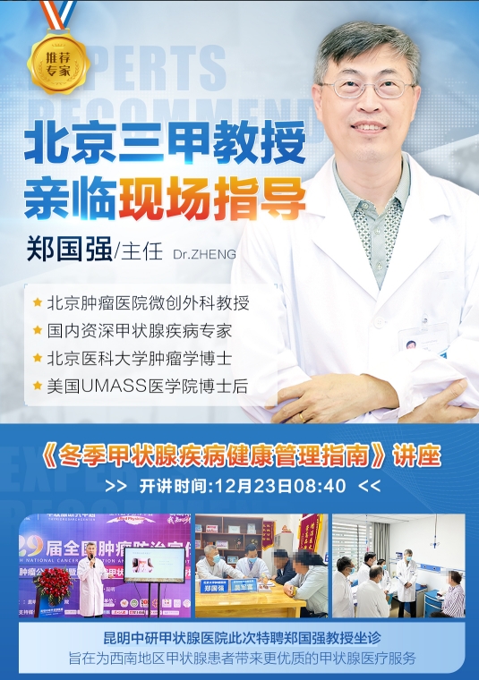 冬季甲狀腺疾病高發(fā),昆明中研甲狀腺醫(yī)院特邀北京腫瘤醫(yī)院鄭國強教授聯(lián)合會診,助您安心過冬。隨著寒風(fēng)凜冽的冬季來臨,許多人開始感受到寒冷對身體的影響。然而,在這個季節(jié)里,除了常見的感冒、咳嗽等疾病之外,還有一種疾病也容易在此時悄然來襲,那就是甲狀腺疾病。